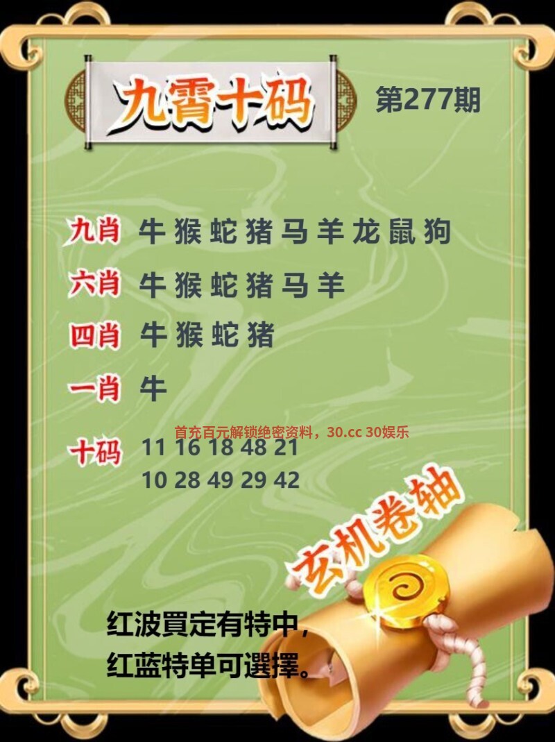 277期:杀十码【06.09.18.21.30.32.33.42.44.45】开:虎16准